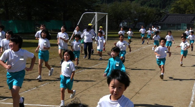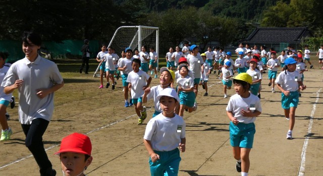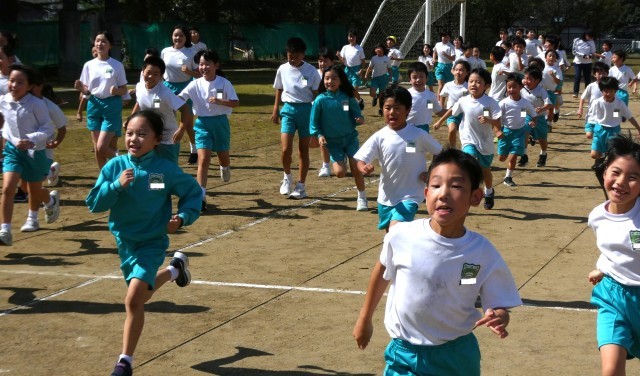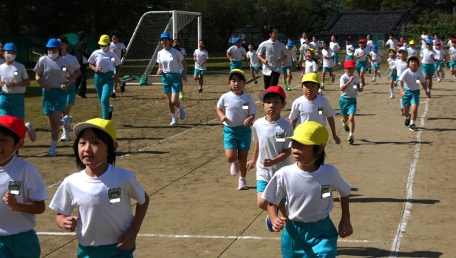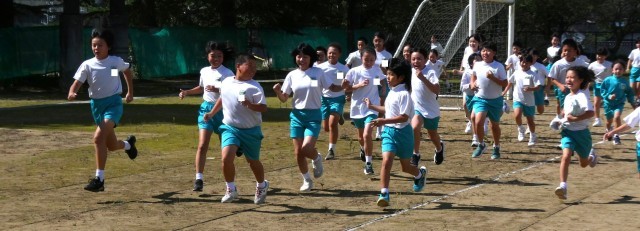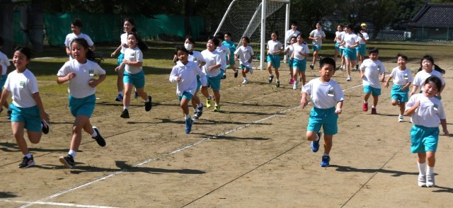 スタート位置を変えて、全校一斉に走り出しました。