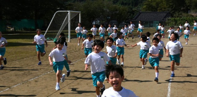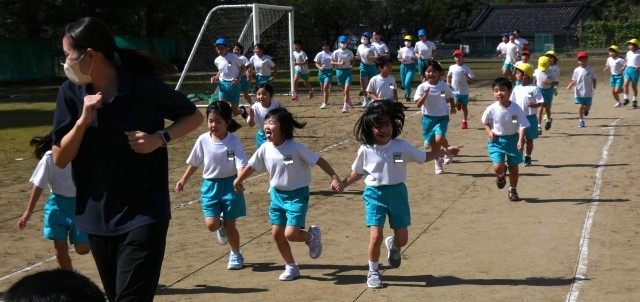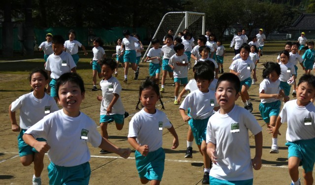 小さい学年は内側、大きい学年は外側のコースを走ります。