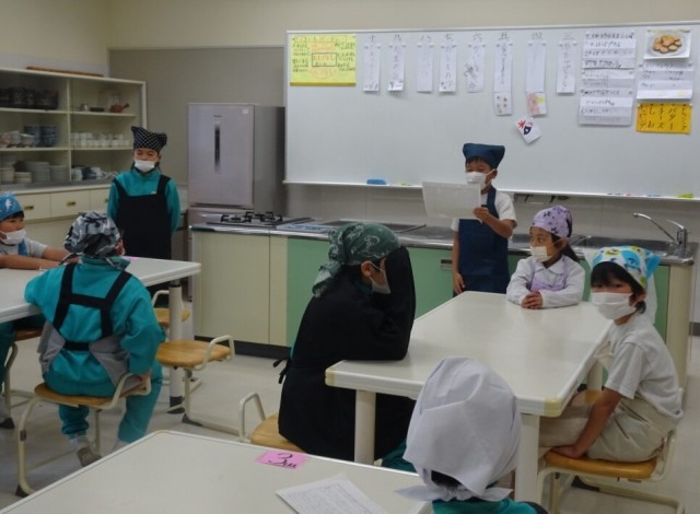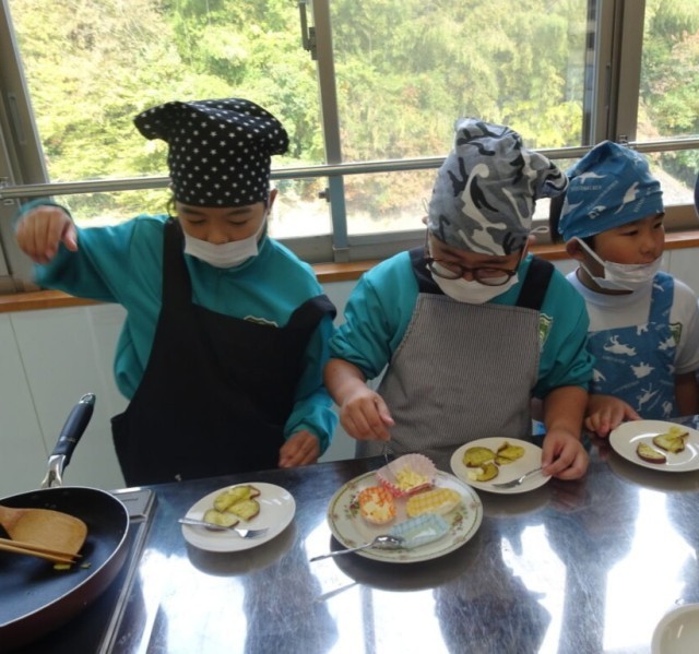 たんぽぽ1・2学級合同で、「さつまいもパーティ」を開きました。これまで自立の時間に、日頃お世話になっている家族の方をおもてなししようと考えてきました。今日は、さつまいも料理のトッピングを家族に聞いて料理したり、クイズを出題したりしました。友達と協力して活動し、楽しい会になりました。