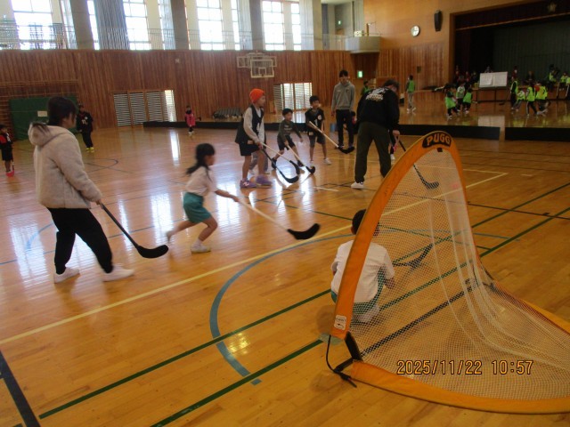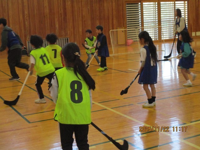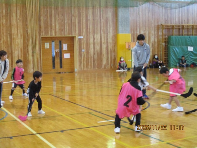 準備運動をしっかりしてから、チームに分かれて試合をしました。