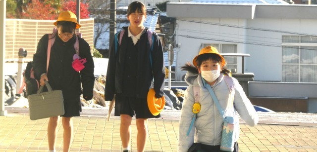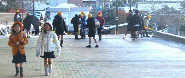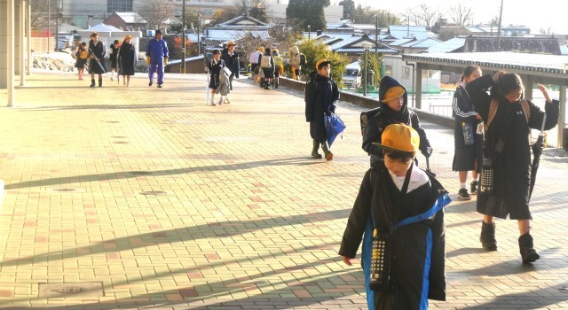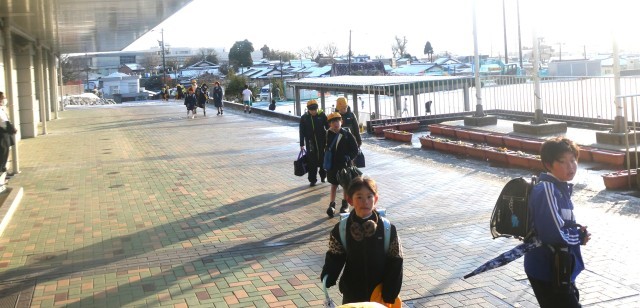 登校中に雪玉を作って、「手が冷たい!」と言っている石っ子が何人もいました。
