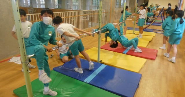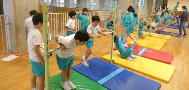 4年1組+2組:体育科「鉄棒、長縄跳び」