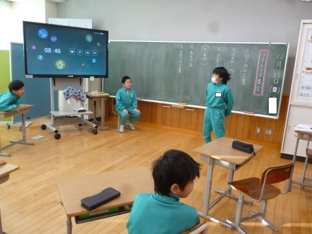 みんなで作ったクリスマスプレゼントがもらえるビンゴゲームや、陣地取りゲームをして、楽しい時間を過ごしました。学習も集会の準備もやり切った2学期。3学期も充実した学校生活にしていけるとよいです。