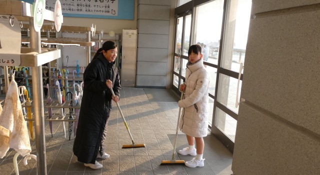 1月15日 6の1 すてき! 公開日 2026/01/15 更新日 2026/01/15 トピックス さわやか活動の「す・て・き」のうち、3学期は「き きれいにせいとん、きれいにそうじ」に取り組んでいます。さっそく、児童玄関を掃除している6年生がいました。すてきです!