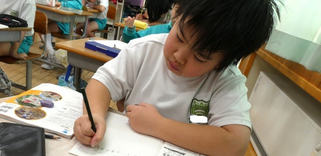 さっと振り返りを書き始める3年生、すてきです!