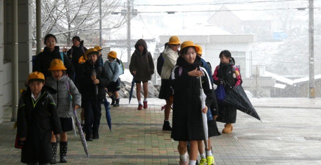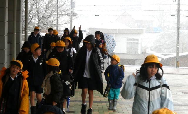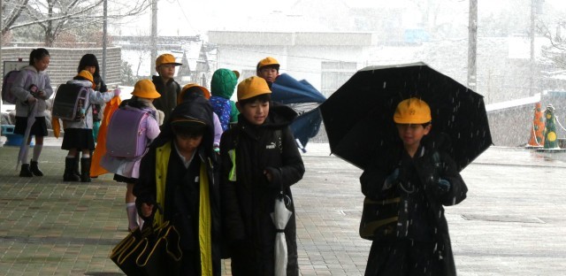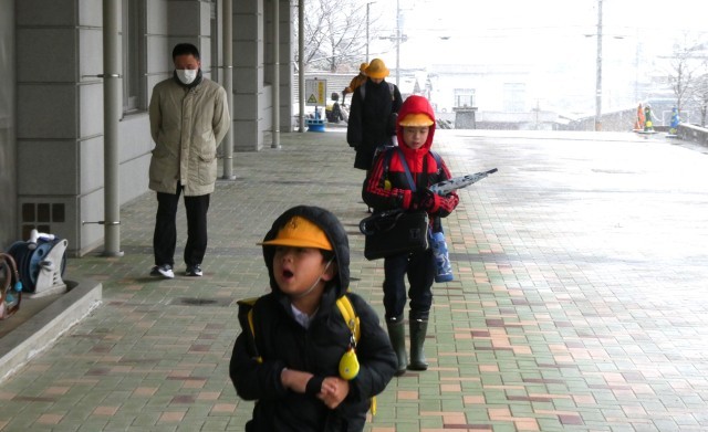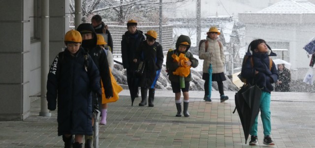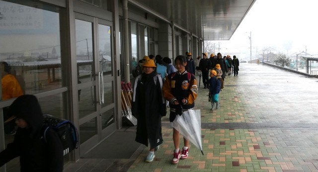 寒い朝でも、しっかり挨拶のできる石っ子が何人もいます。