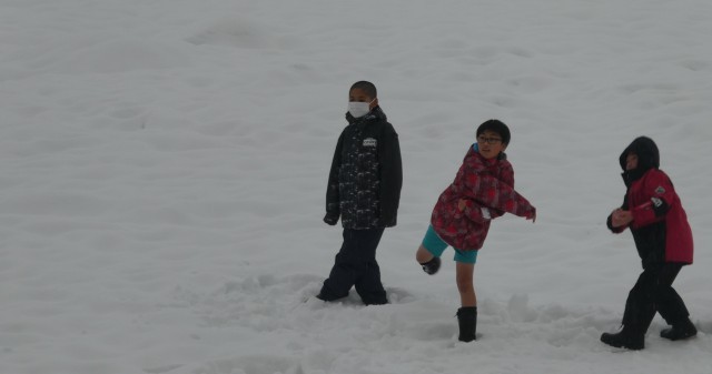 今朝は3名の石っ子が外遊びを楽しんでいました。