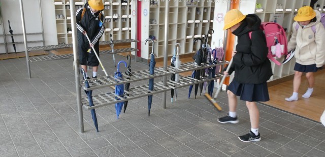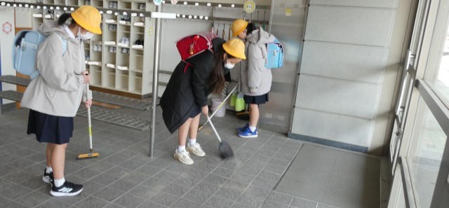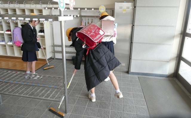 下校時に、6年生が児童玄関の掃除をしていました。