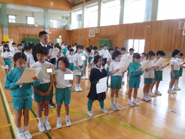 入学おめでとう集会の練習をしました。