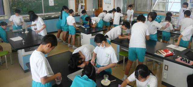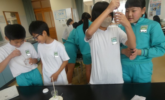 5年1組:理科「水の量を変えると、ものの溶け方は変わるか」