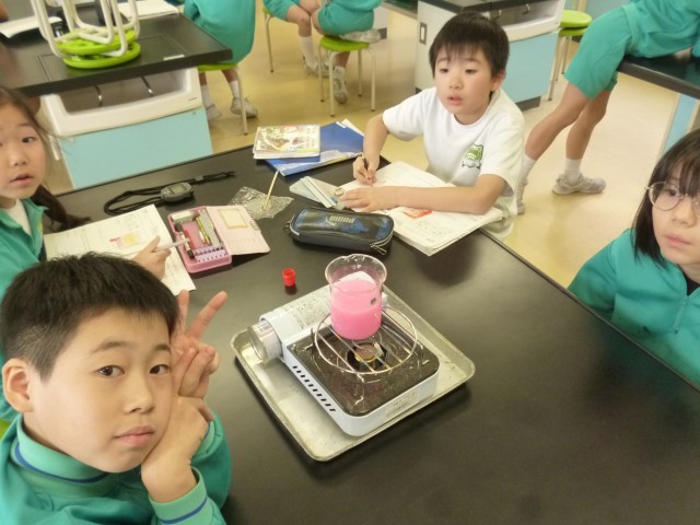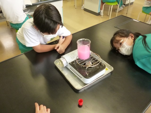 これまでに学習した金属や空気の温まり方から水の温まり方を予想しました。