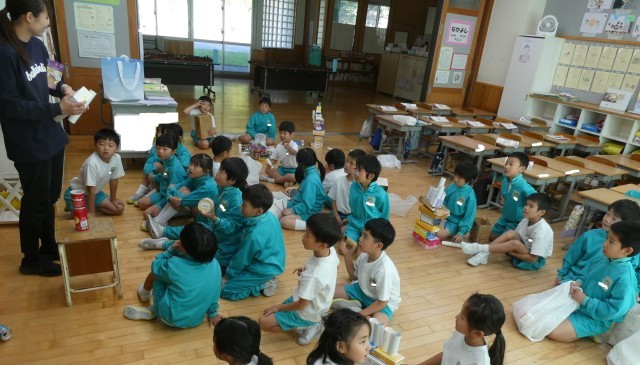 1の2教室から大歓声が響いています。みんなで「大きなかぶ」を抜くゲームをしていました。