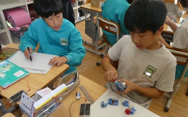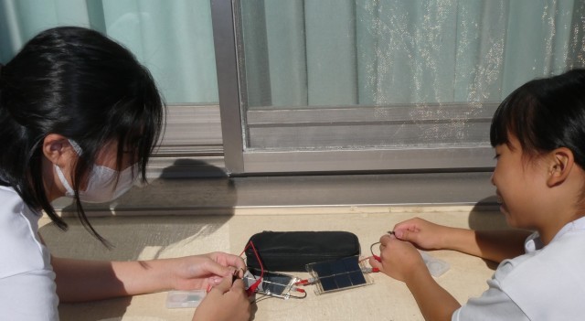 今日は、手回しや日光で電気が作れること、光や音・扇風機のように電気が使えることを体感しました。
