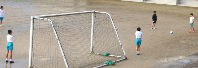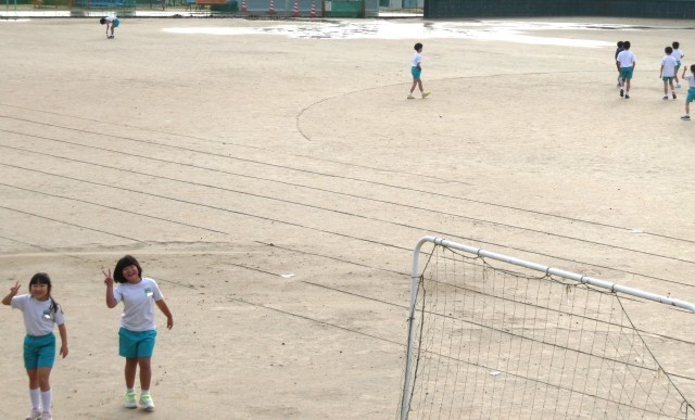 着替えてすぐにグラウンドで遊んでいる子供がたくさんいます。