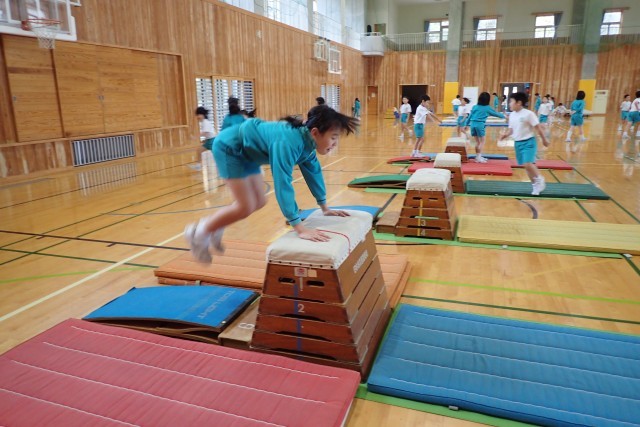 3年生は、体育科の学習で「とび箱」に取り組んでいます。