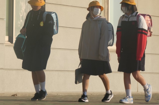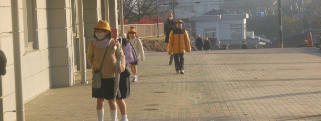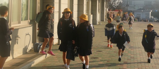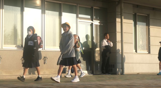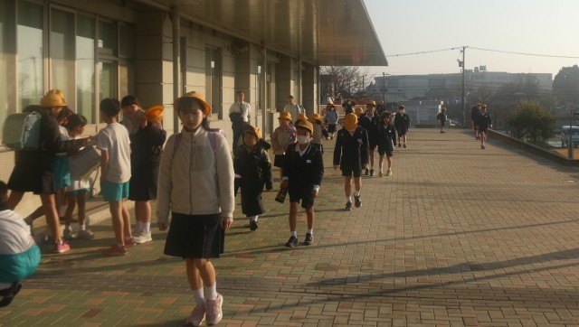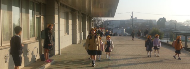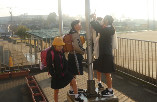 川沿いでは濃い霧がかかっていましたが、学校周辺は視界良好です。