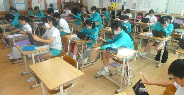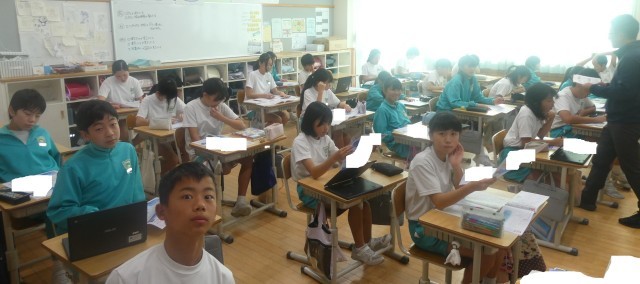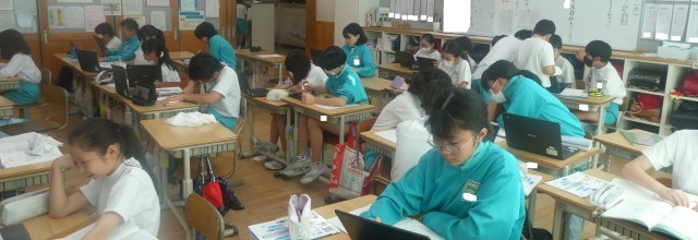 小矢部市の小学校では、あったかプロジェクトに各校で取り組んでいます。今日は、5校をオンラインで結び、お互いの取り組みを知って、今後の活動に生かすことを目的に会議を行いました。