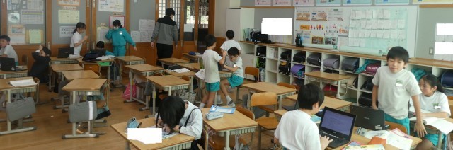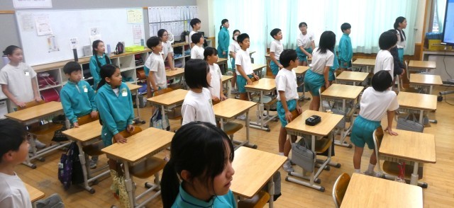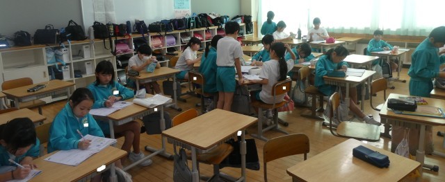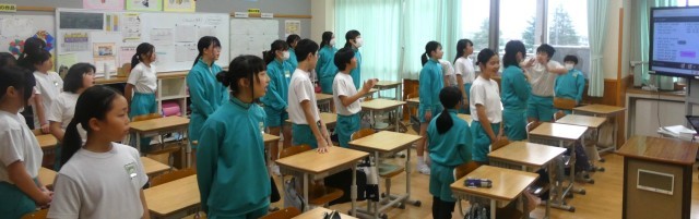 3年1組は、とても美しく歌っていました。6年2組は、とても元気な声で歌っていました。