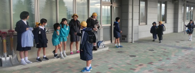 3年生の3名が、自主的に計画委員と一緒にあいさつ運動をやり始めました。