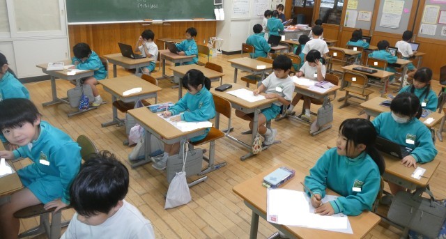 5年1組+2組:総合的な学習の時間「米感謝集会の準備」