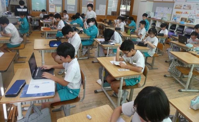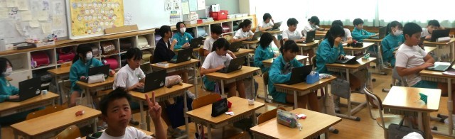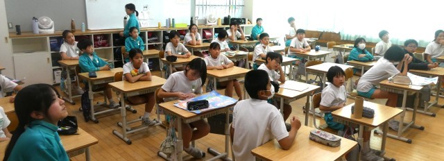 5年生は、バケツ稲や学校田での米作りでお世話になった方々を招待し、感謝集会を開きました。感謝の言葉を伝えたり、これまでの米作りの学習の発表をしたりしました。また、収穫したお米を使っておにぎりを作り、振る舞いました。5月から5年生の米作りに関わってくださった皆さんありがとうございました。