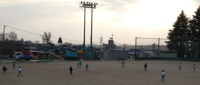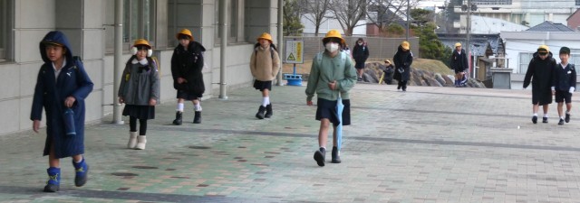 グラウンド状態を確認して、2・3年生が外遊びに出ています。