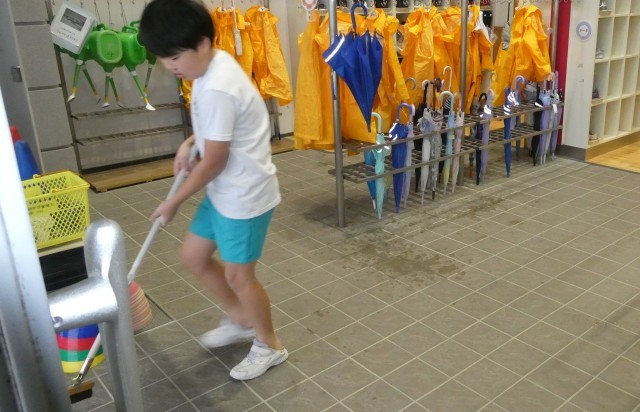 放課後、来賓玄関の掃除をしてくれている6年生が!