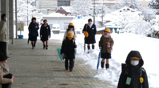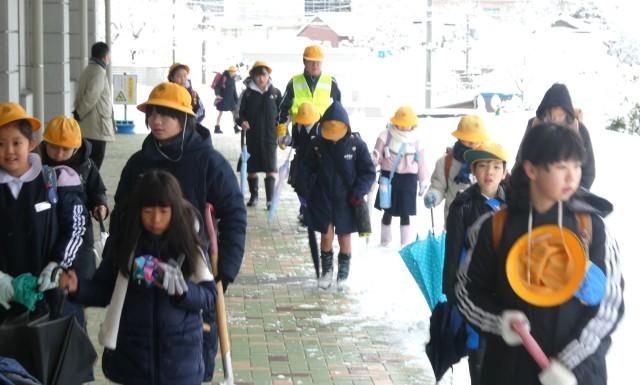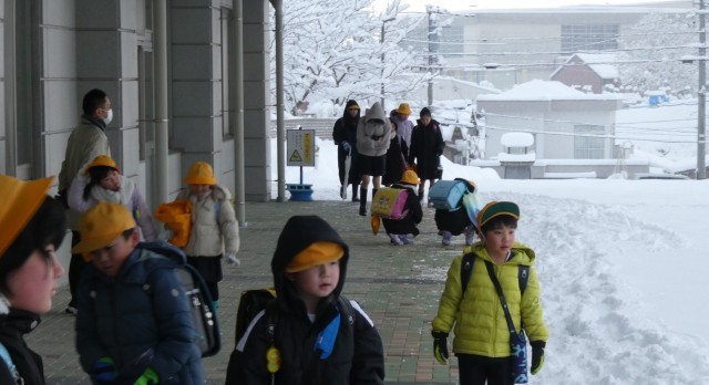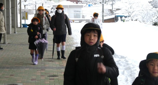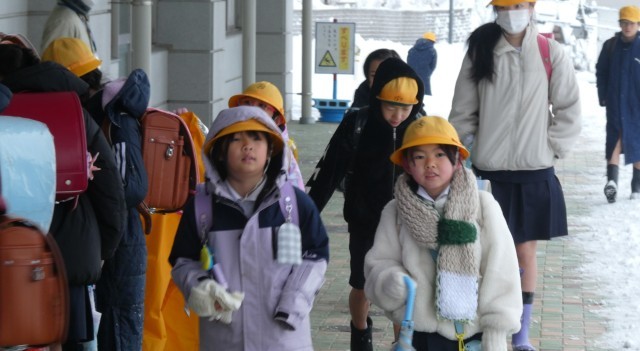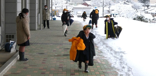 家庭でも雪道の安全についてご指導いただいたおかげで、安全に学校に到着しています。