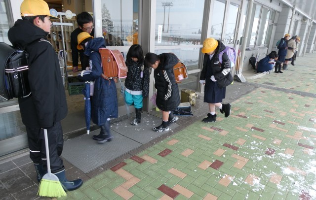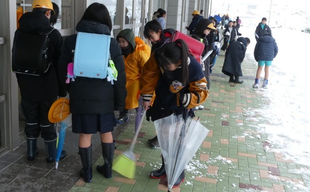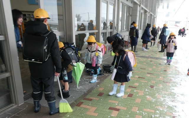 今朝も校内に入る前に、雪を落とすように呼びかけてくれました。