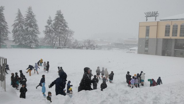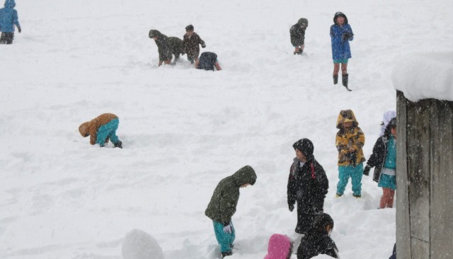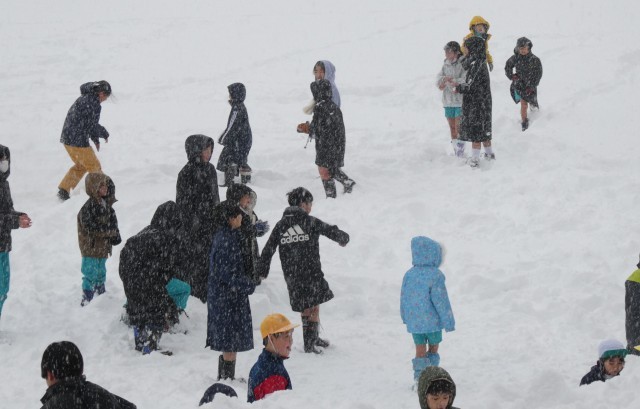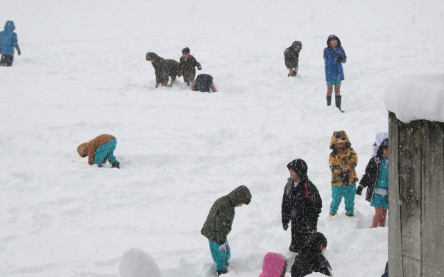 長休みには、たくさんの石っ子が雪遊びを楽しんでいます。