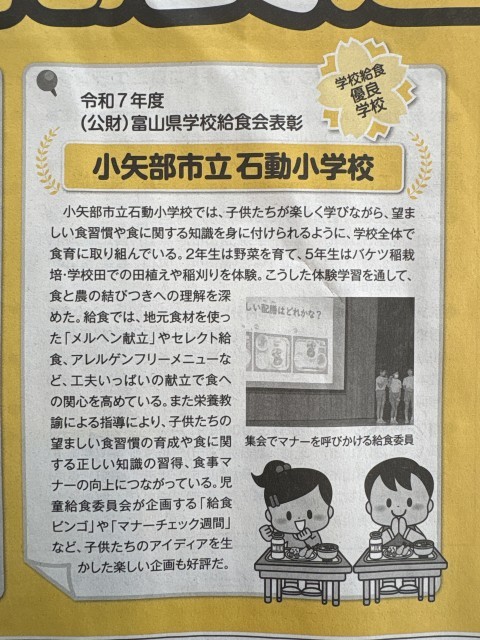 本日の北日本新聞の16面に石動小学校の取組が掲載されました。