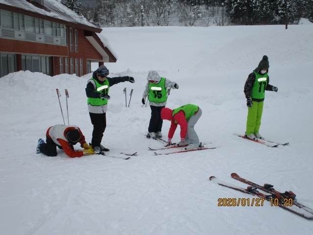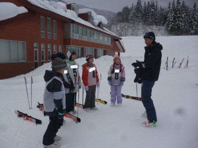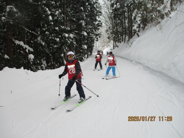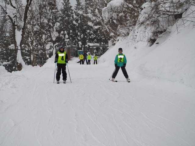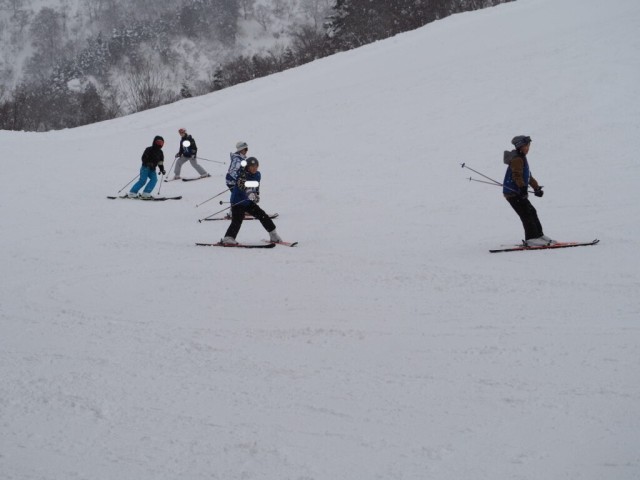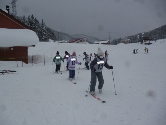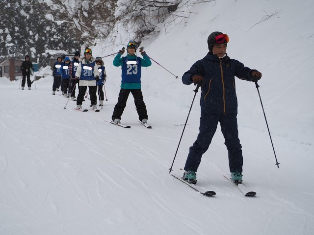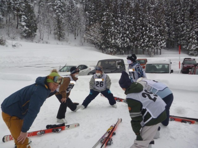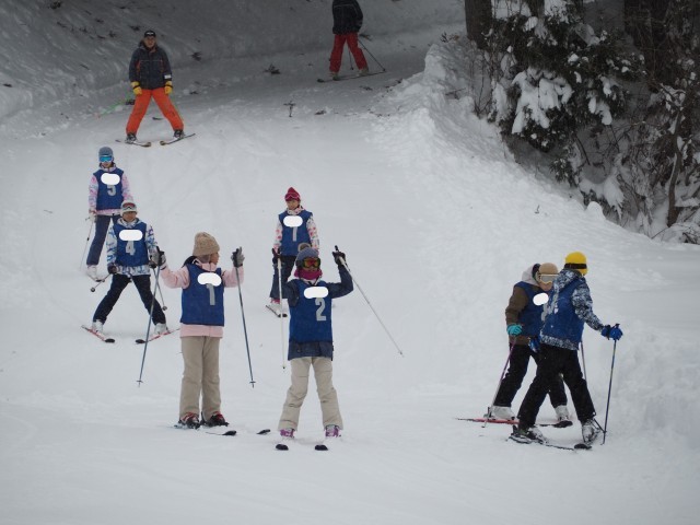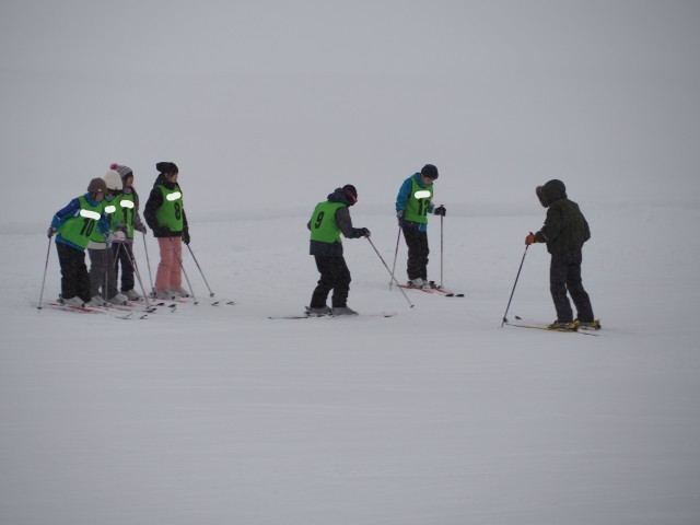 昼食はみんなと楽しく食べました。午後の練習では慣れてきて、一列になって滑ることができました。