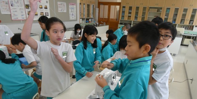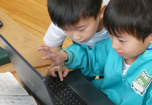 文字どおり「頭を寄せ合って」、楽しみながら学んでいます!