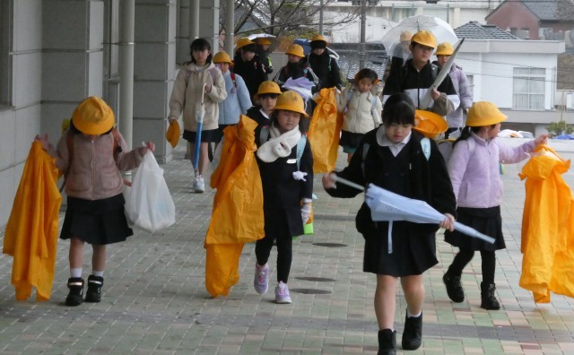 雨の登校となりました。