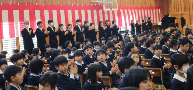 お世話になった6年生に喜んでもらおうと、きれいに飾り付けをしています。