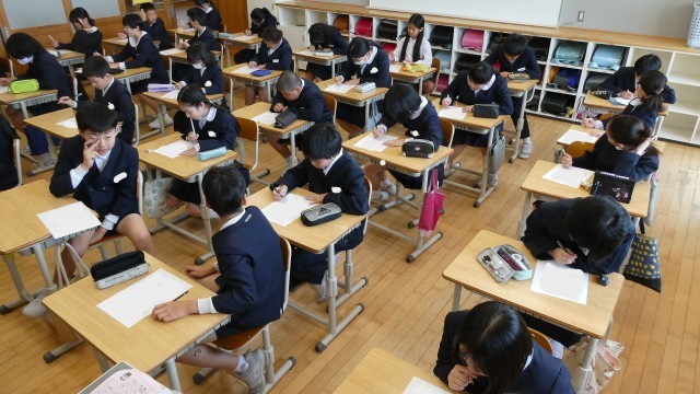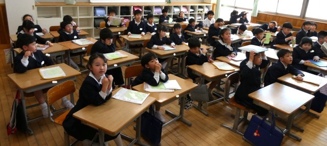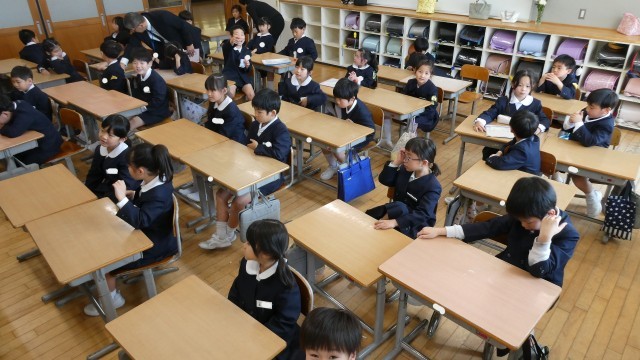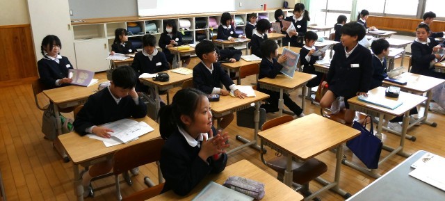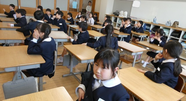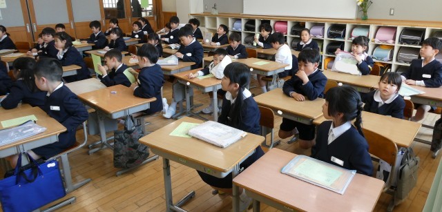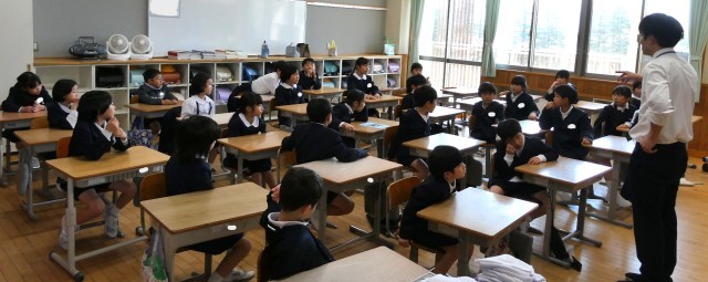 シーンとした教室では、机や椅子が石っ子を待っていました。