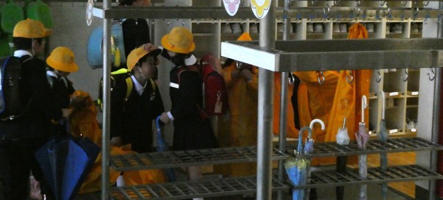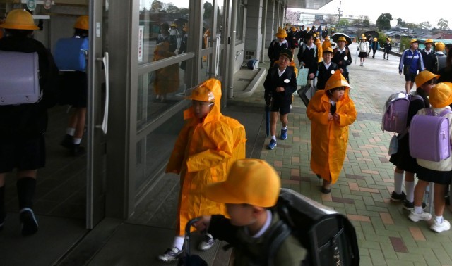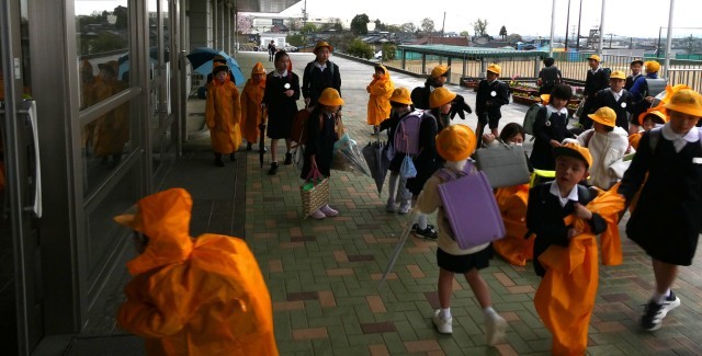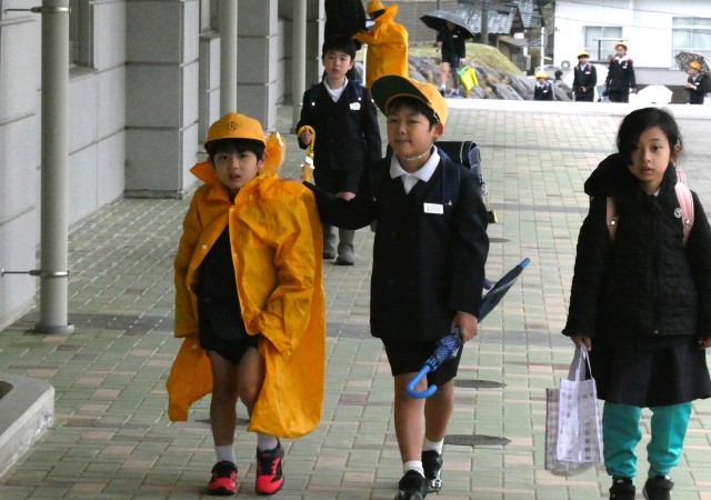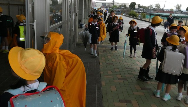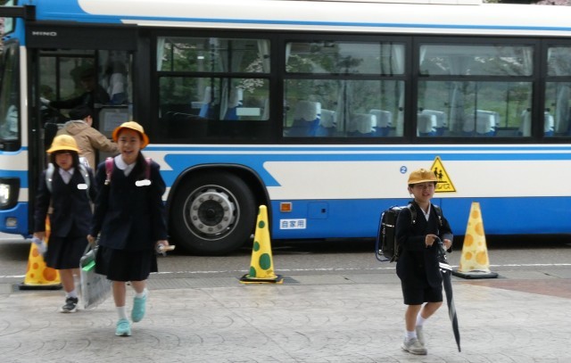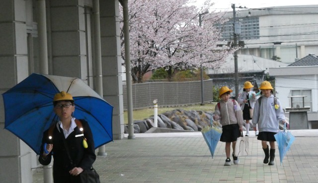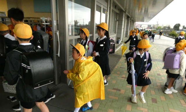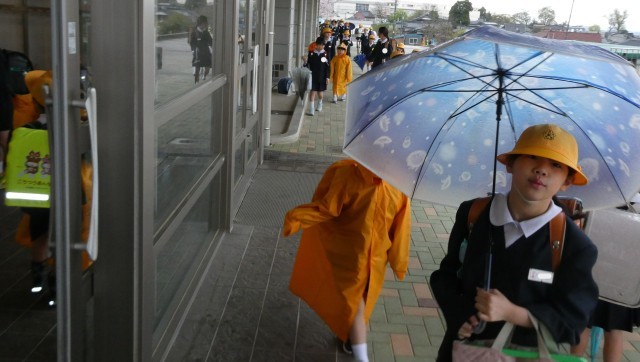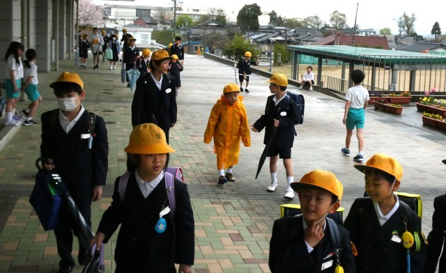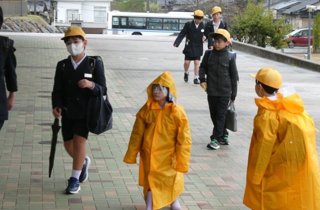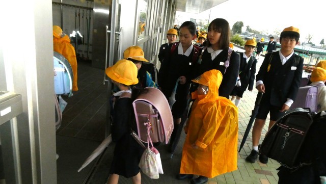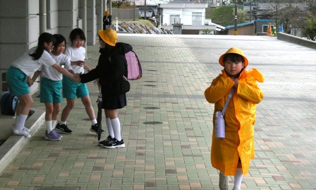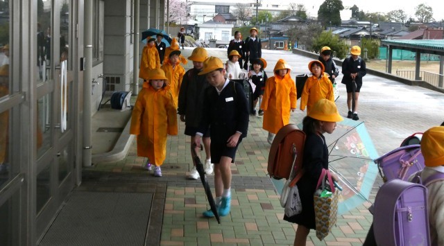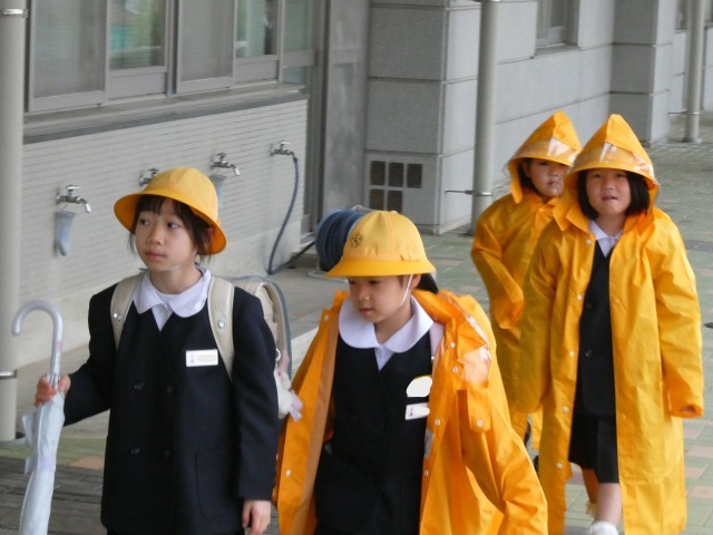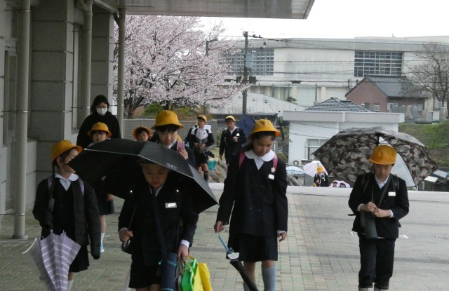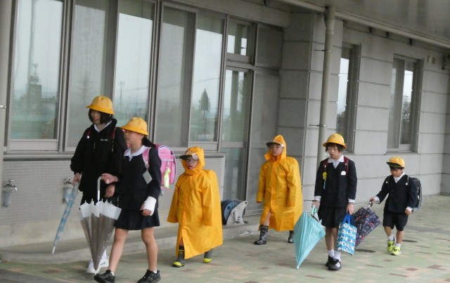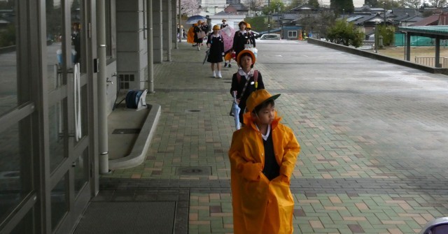 雨の登校になりました。