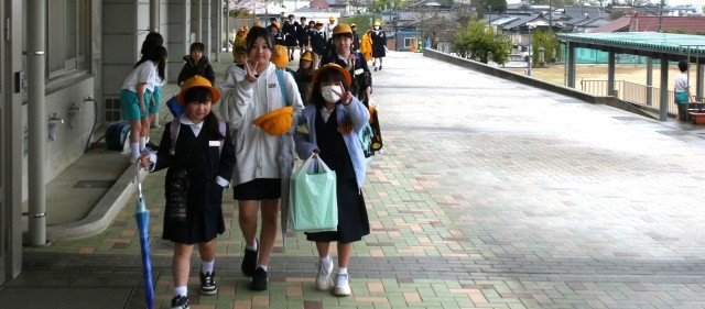 今日から、1年生も一緒に登校しています!