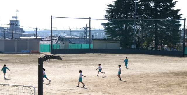 グラウンドいっぱいを使って、楽しそうに遊んでいます!