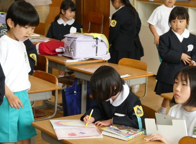 昼休みには、6年生が1年生のお世話(遊びに?)来ています。