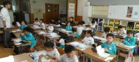 国語科では、「くじらぐも」の学習をしています。学習が終わったあと、机の形をくじらぐもの形にしてみんなで給食を食べました。みんなで顔を見合わせながら食べる給食は、いつもよりも美味しそうにモリモリと食べ...