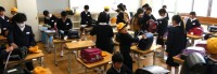 入学式の準備をしています。卒業式の経験を生かして、てきぱきと働いています。よく働く6年生、すてきです!