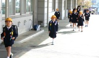石っ子が元気に登校してきました。