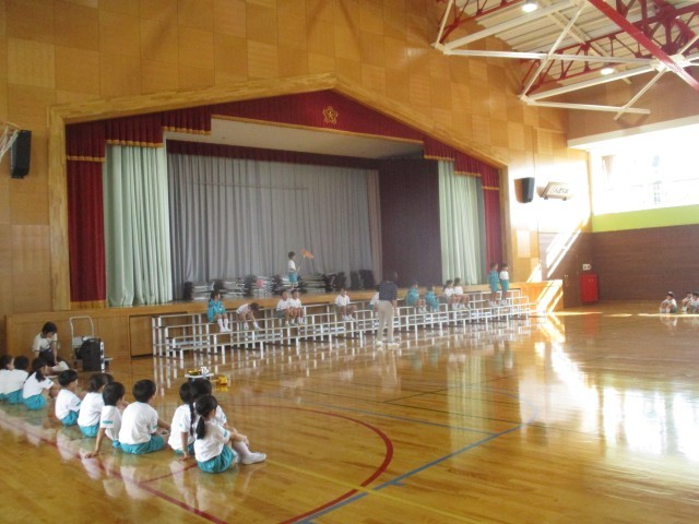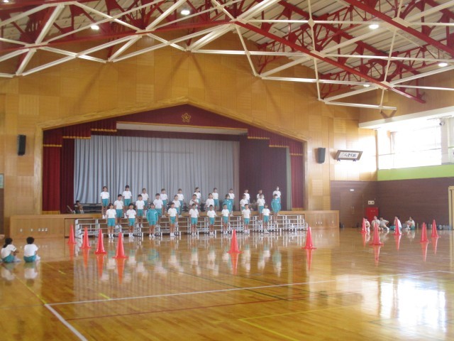 どの学年も学習発表会のステージ発表練習を進めています。今日は、多くの学年が体育館やランチルームで場所どりや動きを確かめていました。。