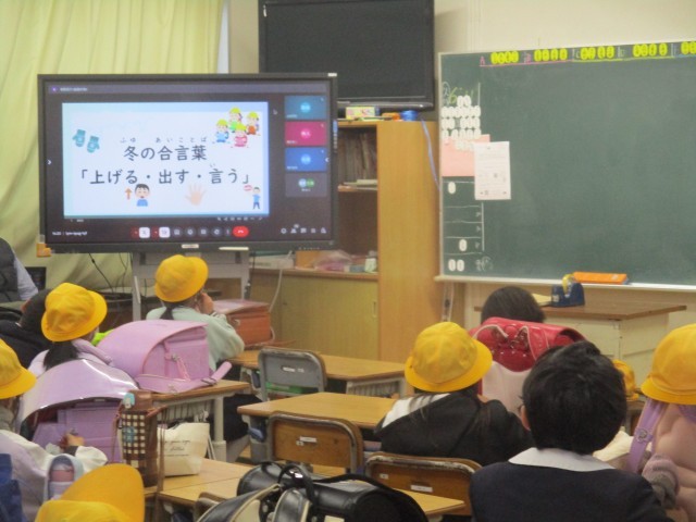 校外班集会を開き、2学期の集団登下校の振り返りと冬休みの計画について話し合いました。校外班ごとの話合いが終わった後には、教室に戻り、冬の安全な登下校のために気を付けるポイントについての話を聞きました。
