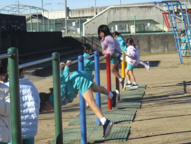 休み時間に子供たちが外でのびのびと遊んでいました。立山連峰がすっきりと見える晴天は貴重です。思い思いに遊ぶ子供たちの笑顔は、見ているだけでも幸せな気持ちになります。