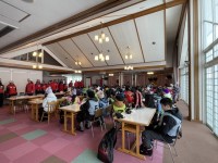 今日は、5年生と6年生でスキー教室を行います。目当てや約束を確かめ、スキー場に出発しました。一人一人の目当てを大切にして、安全に気を付けながら取り組んできます。