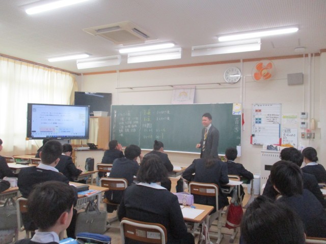 大谷中学校の先生に来ていただき、6年生が中学校の数学の授業の一部を体験しました。子供たちは、少し緊張しながらも、中学校生活への期待をもって真剣に授業を受けていました。