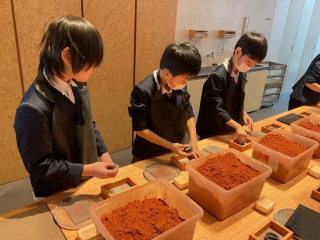 工場で鋳物が作られる様子を見学し、箸置き作りを体験しました。