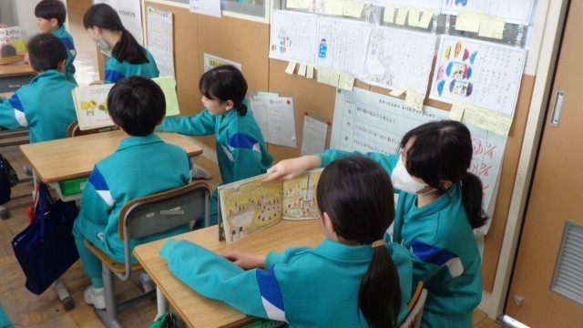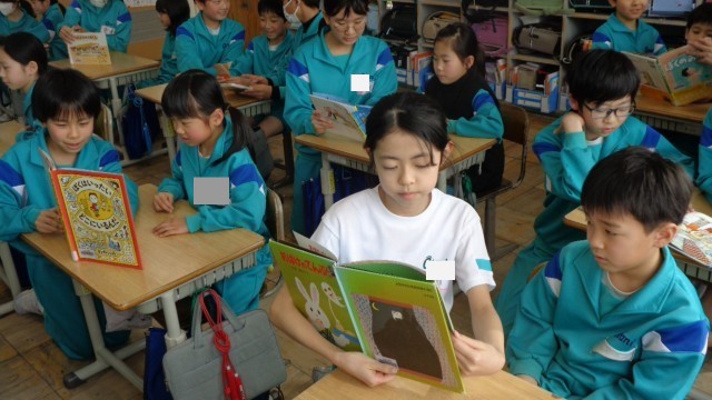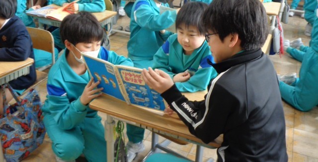 図書委員会の企画で、長休みの時間に5年生が絵本の読み聞かせをしに来てくれました。5年生は、2年生に合わせた絵本を選び、ゆっくり読んでくれていました。2年生は、5年生との交流後、「おもしろかった!」と笑顔いっぱいでした。